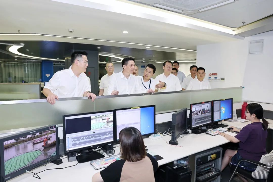 陈浩先后来到全媒采访中心、融媒编发中心的电视制播区、广播直播区和智媒工作区,看望慰问一线新闻工作者,感谢大家为推动全市改革发展作出的贡献。调研中,陈浩仔细询问新闻采集、编审、制作、播出流程以及“南太湖号”客户端运营、中心基础设施建设等情况,对大家展现出的良好精神面貌以及各项相关工作取得的成效表示充分肯定。他勉励中心采编人员,要始终围绕中心、服务大局,深入基层、贴近群众,勤于思考、善于学习,切实增强脚力、眼力、脑力、笔力,努力打造一支守正创新、融合奋进、卓越致远的湖州传媒铁军。